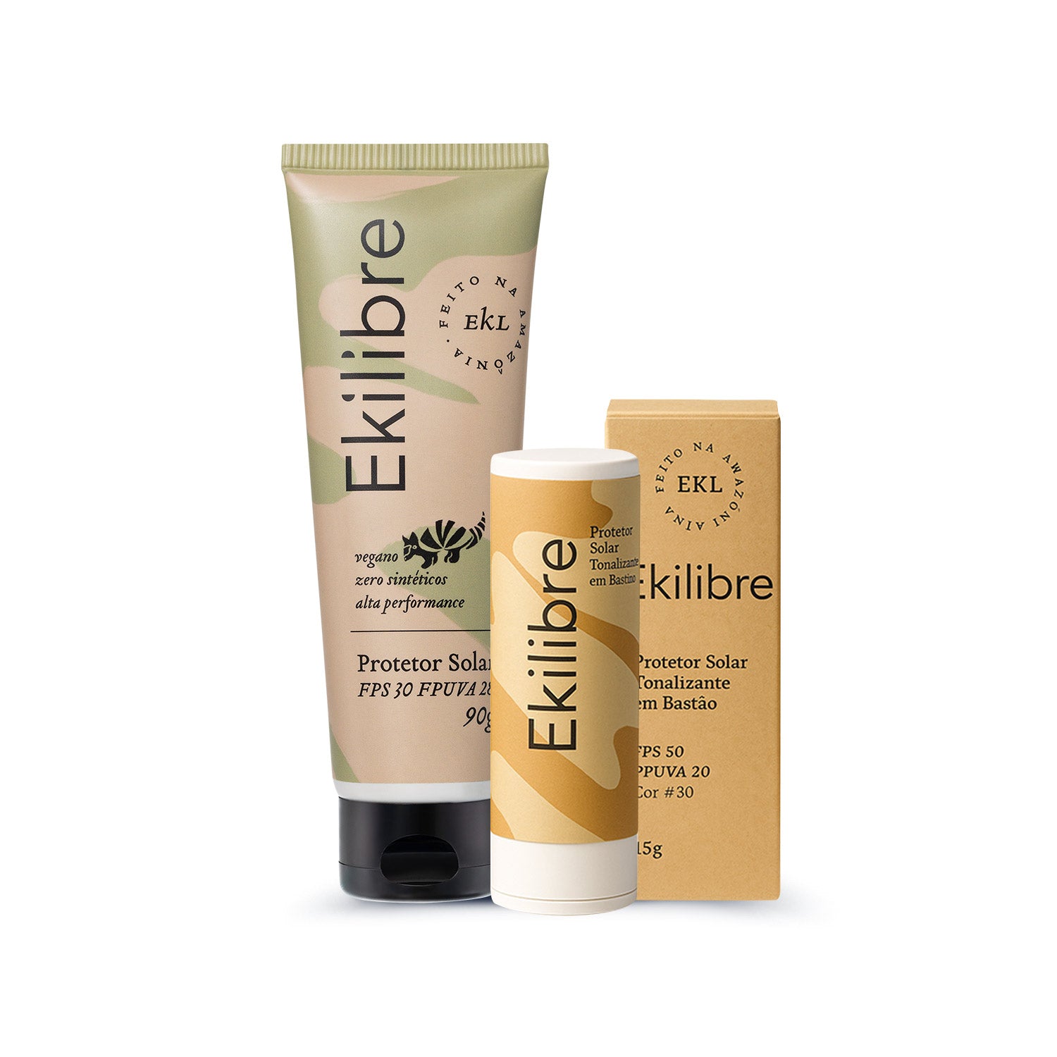 O Combo Protetor Solar Ekilibre Amazônia reúne duas soluções complementares de proteção solar física, natural e vegana, desenvolvidas para diferentes momentos da rotina. A combinação do protetor solar físico em bisnaga 90 g com o protetor solar tonalizante em bastão FPS 50 garante proteção eficaz contra os raios UVA e UVB, com praticidade, alta tolerância cutânea e ativos de origem natural.
