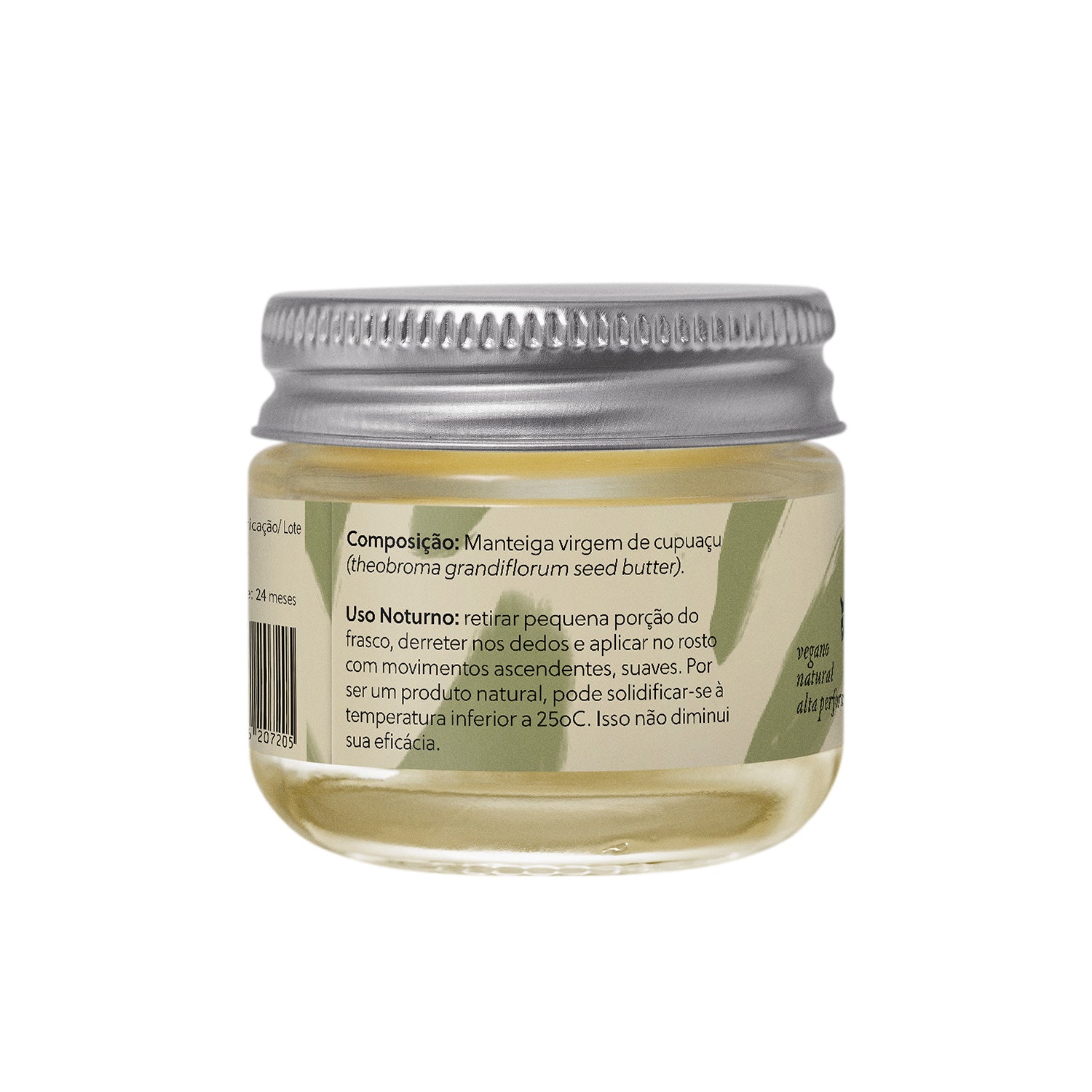 Modo de uso: Composta exclusivamente por Theobroma grandiflorum seed butter (manteiga de cupuaçu), sua aplicação é simples: uma pequena porção derretida entre os dedos e espalhada suavemente de baixo para cima na pele. Em climas frios, pode endurecer, mas basta amolecer entre os dedos para manter sua eficácia intacta. Essa variação na consistência não compromete a qualidade do produto.